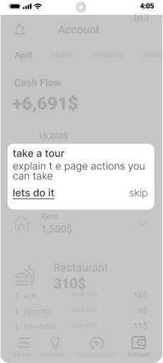 Immediately after onboarding, there is an option to coach marks to explain how to use the application.