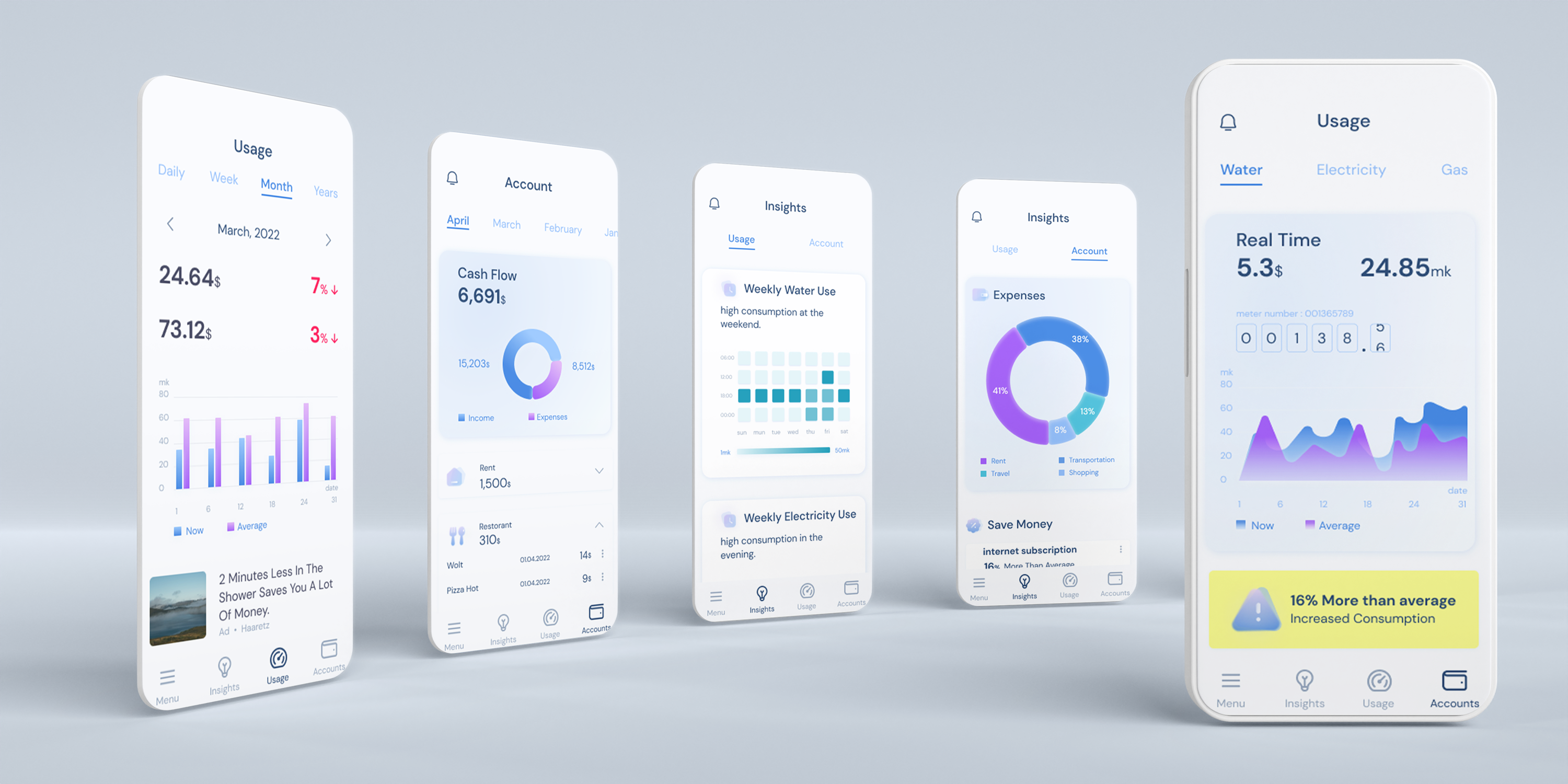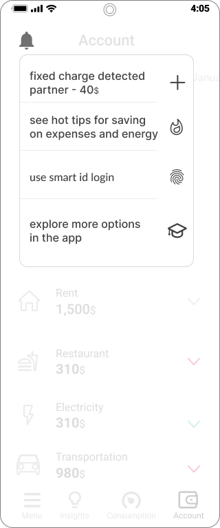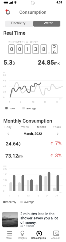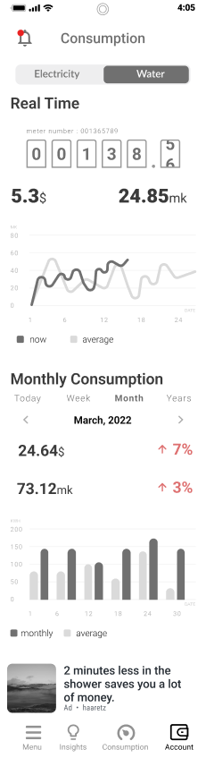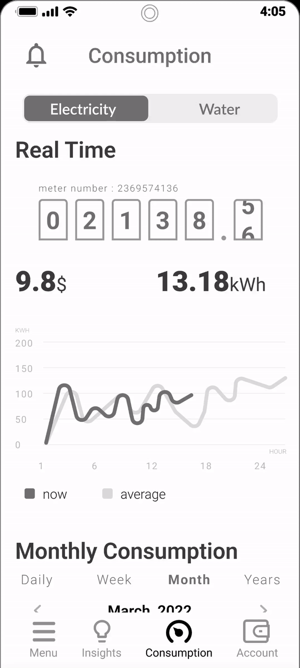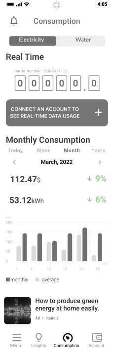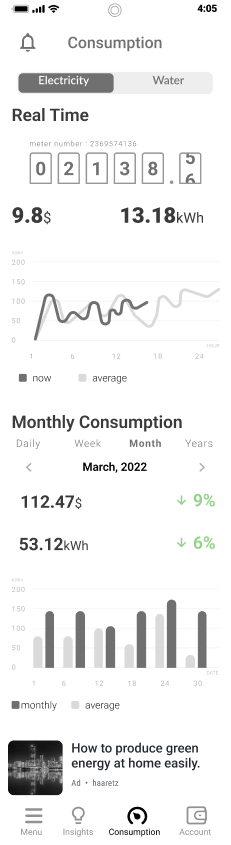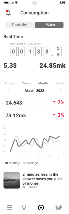 Displaying alerts such as abnormal consumption or connecting to an account for real-time data viewing.