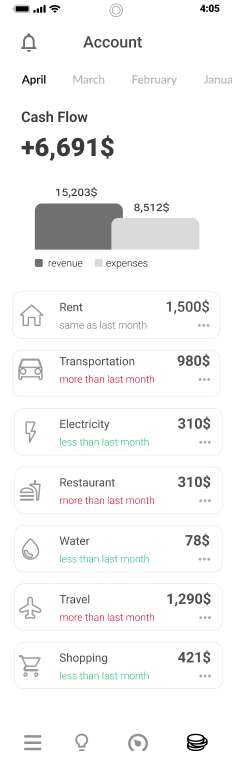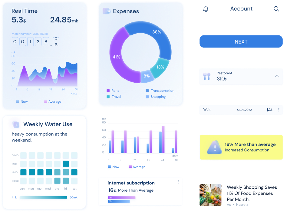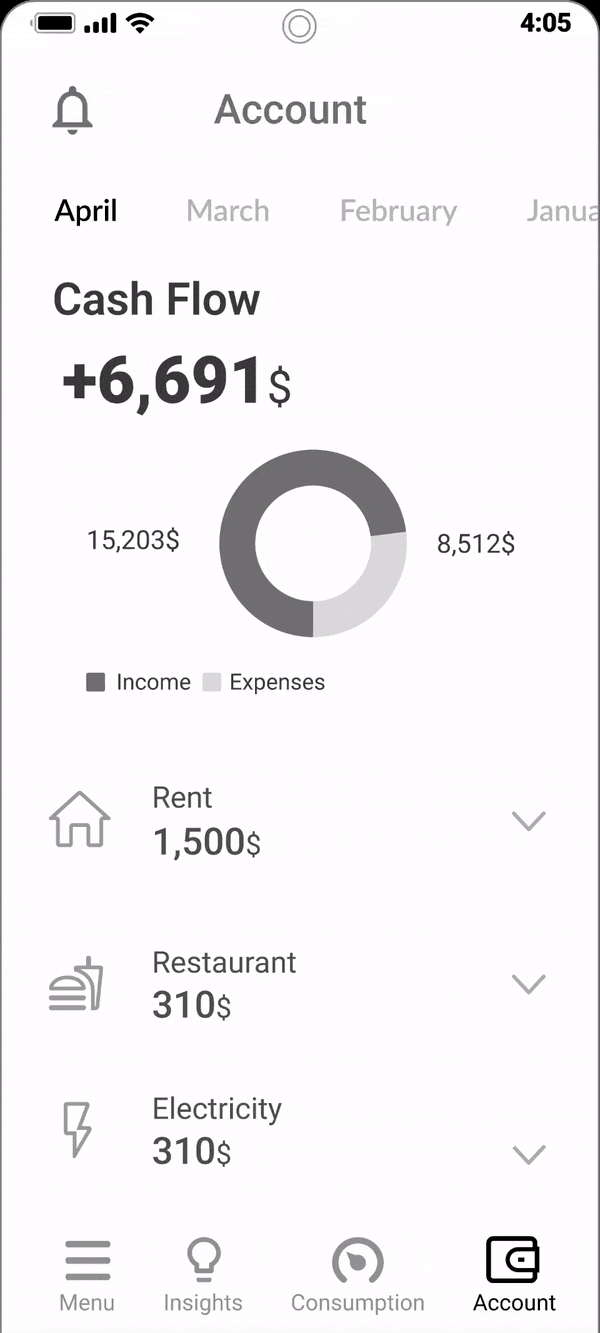 Monitoring electricity, water, gas and current expenses of the property in real-time from all bank accounts and credit cards.